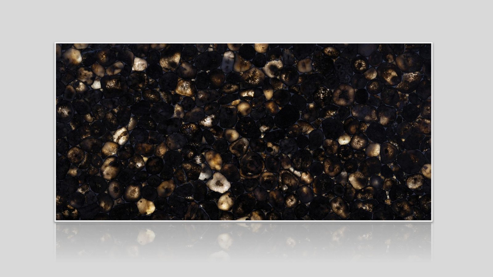 De rijke kleurintensiteit, glanzende afwerking en natuurlijke patronen maken Coal Agate bijzonder geschikt voor exclusieve interieurtoepassingen waar sfeer, luxe en karakter centraal staan.